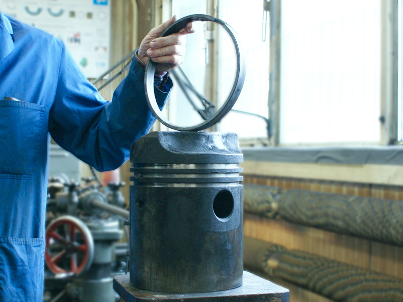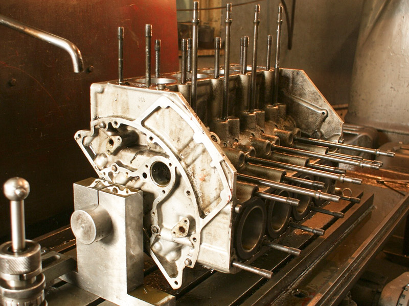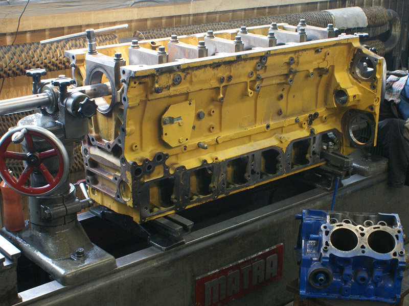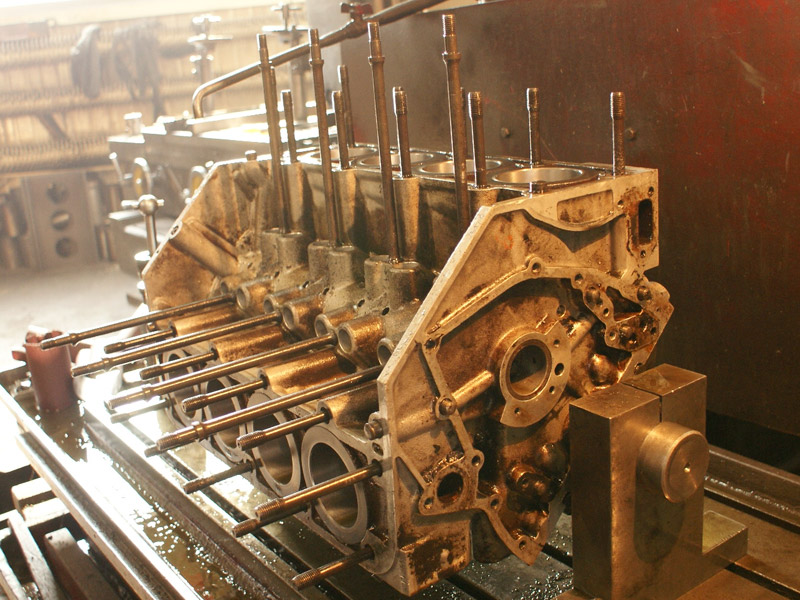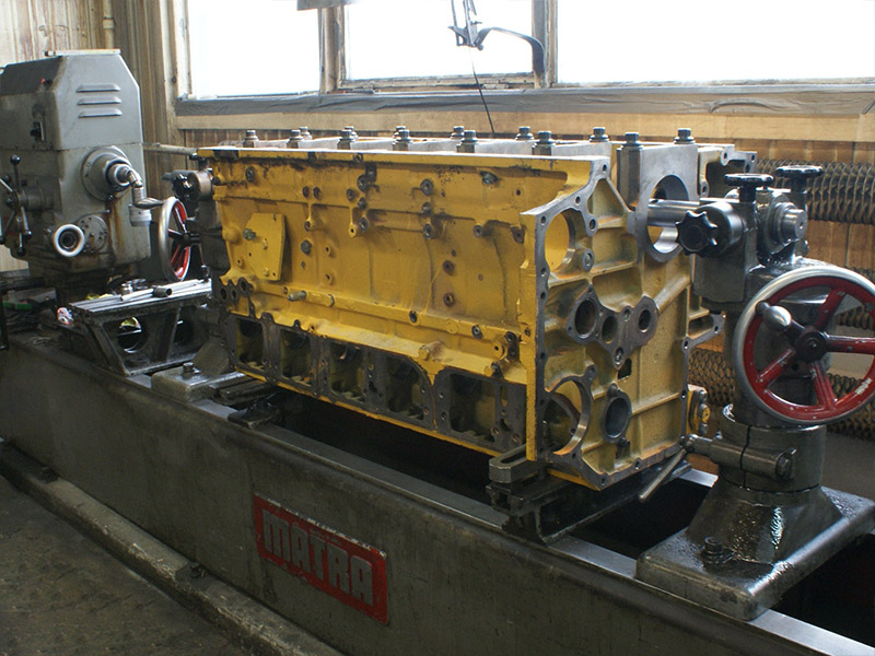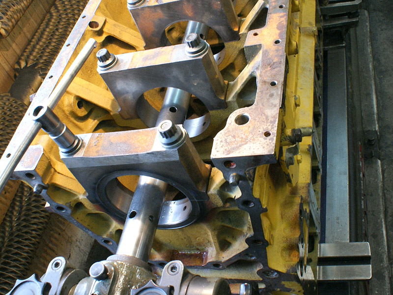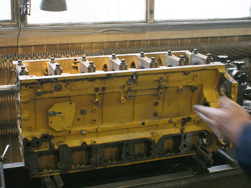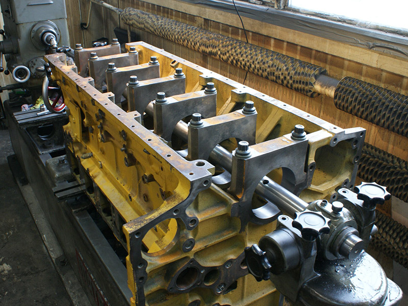 Silnik wywrotki pracującej w kopalni. Wytaczanie łóż głównych. Na ostatnim zdjęciu widoczny silnik V4 dla porównania rozmiarów.